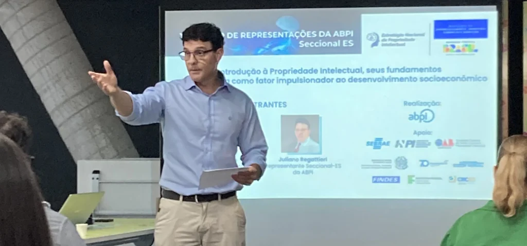 No dia 24/03/2022, o INPI, o IFES – Instituto Federal do Espírito santo, e a Justiça Federal do ES, realizaram o Seminário “Panorama da Inovação e Propriedade Intelectual no Espírito Santo” para apresentar as políticas e iniciativas de inovação para o ES. O evento aconteceu na sede da Justiça Federal de Vitória para marcar a inauguração do novo Centro de Propriedade Intelectual, Negócios e Inovação Regional do INPI em Vitória, que agora encontra-se junto ao Polo de Inovação do IFES, no bairro de Jardim da Penha. O local será a sede da Cidade da Inovação, como é chamado o complexo de mais de 20 mil metros quadrados em que ficavam os galpões do IBC. O diretor da Regattieri Marcas, Juliano Regattieri, esteve presente representando a Associação Brasileira da Propriedade Intelectual – ABPI. O projeto é fruto de uma parceria do IFES com a SECULT-ES e funcionará com o objetivo de aceleração da economia criativa. Várias entidades estiveram presentes para o evento. Compuseram a mesa de abertura o Pró-reitor de extensão do Instituto Federal do Espírito Santo, Lodovico Ortileb; o representante da Secretaria de Emprego e Competitividade do Ministério da Economia, Felipe Machado; o Presidente do Instituto Nacional da Propriedade Industrial, professor Cláudio Vilar Furtado e o juiz federal, representando a Justiça Federal – Seção Judiciária do ES, Américo Bedê Freire Junior. Foram realizados 5 painéis sobre: · O papel do IFES no ecossistema de inovação capixaba – Rodolpho da Cruz Rangel – diretor de extensão tecnológica do IFES; · INOVARES – laboratório de inovação da JFES – Cristiane Conde Chmatalik – juíza federal; · Políticas de fomento à inovação no espírito santo – Elton Siqueira Moura – diretor de inovação da fundação de amparo à pesquisa e inovação do espírito santo, FAPES; · Programa INPI negócios e suas ações de promoção pública da PI – Felipe Augusto Melo de Oliveira – coordenador-geral de disseminação para inovação do INPI; · “Ativando negócios por meio da PI” – Christian Mariani Lucas dos Santos – professor e diretor de extensão do IFES campus Vitória; e Huarley Pratte Lemke- professor do instituto federal do Pará (IFPA).